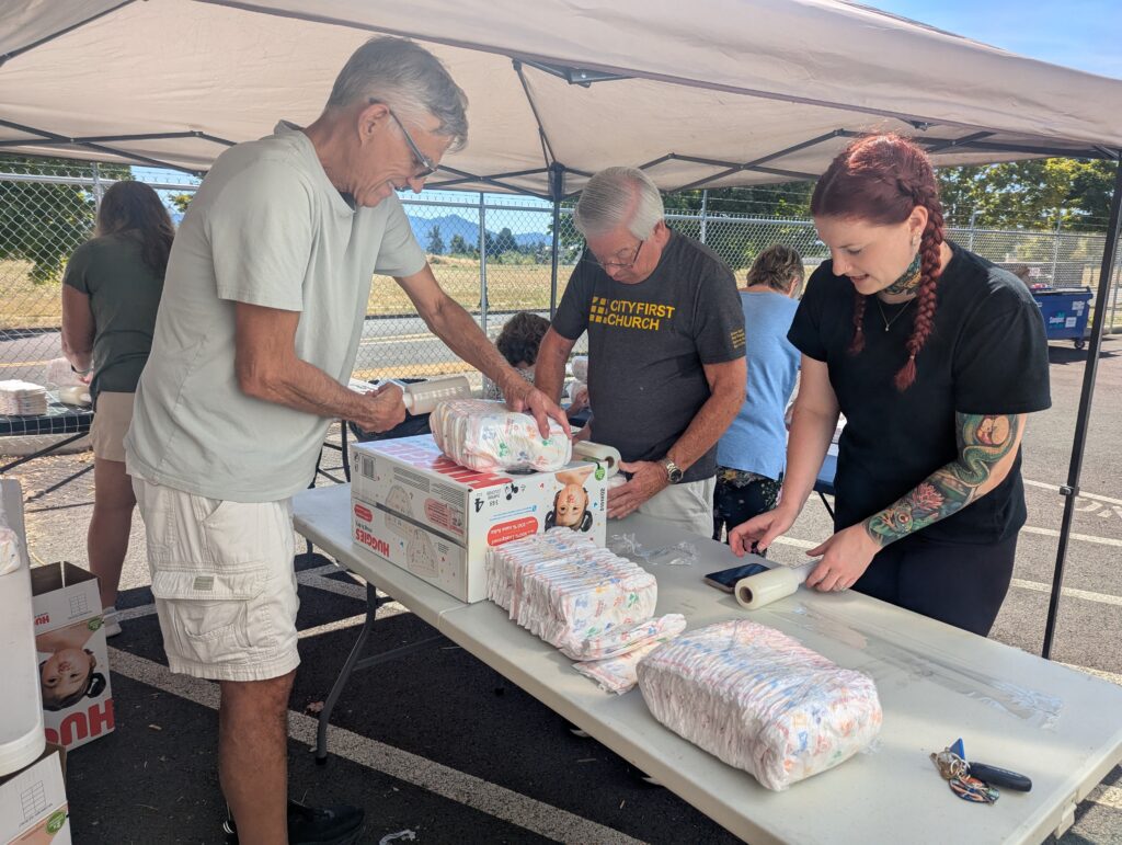 Great for groups and teams! Come get diaper packs ready for families!