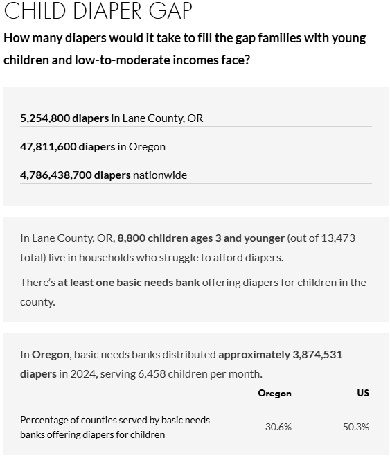 Meeting diaper need is both a compassionate response and a smart investment in stronger families and a stronger Lane County.