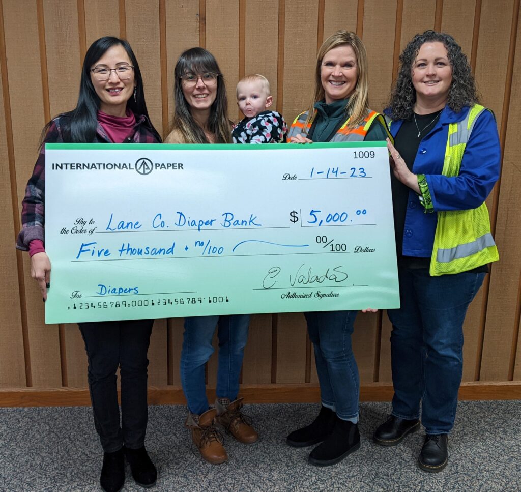 “Lane County Diaper Bank is a 501(c)(3) nonprofit. Donations are tax-deductible. EIN:842745177